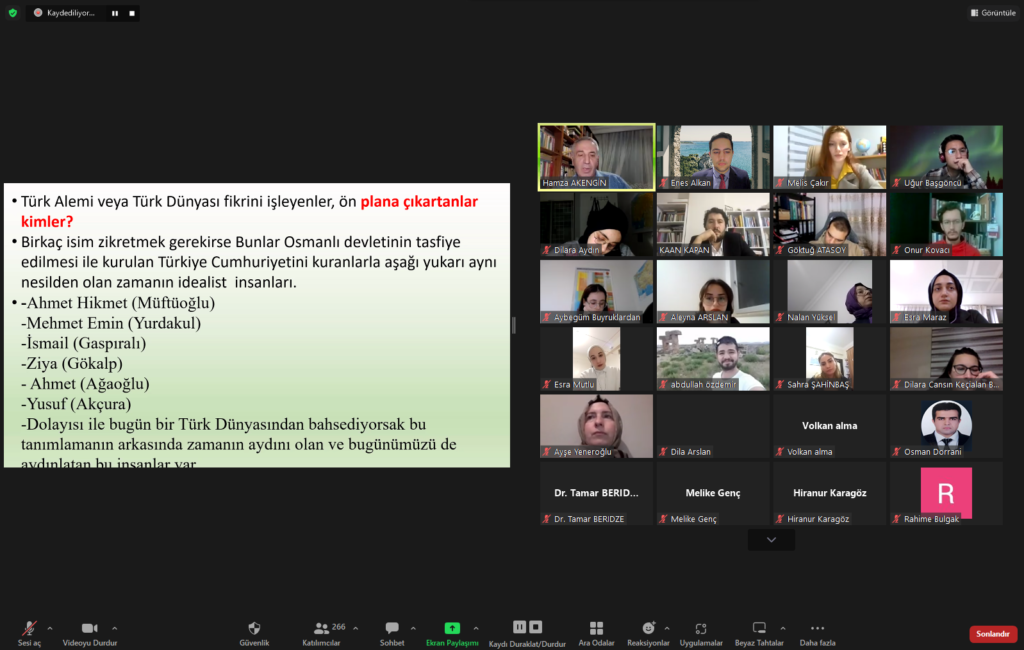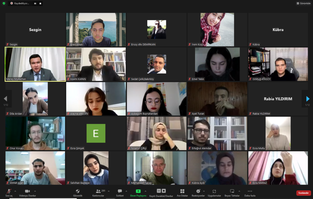 Kazakistan Ankara Büyükelçiliği Müsteşarı Merey Mukazhan’ın katılımlarıyla “Kazakistan ve Türk Dünyası”, Marmara Üniversitesi Öğretim Üyesi Prof. Dr. Hamza Akengin’in katılımlarıyla “Türk Dünyasına Kavramsal Olarak Bir Bakış” konulu derslerimiz ile akademimizin ikinci etabı gerçekleşti.