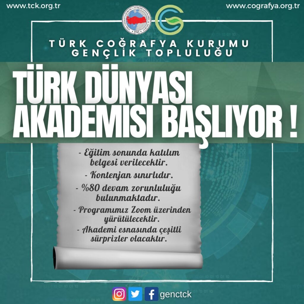Eğitim serilerimizin ilkini Türk Devletleri Coğrafyacılar Birliğinin kurulacak olması ve Bölge Uzmanlığı kapsamında gerçekleştiriyoruz. Türk Dünyası Akademimiz 8 Aralık Perşembe günü başlıyor.