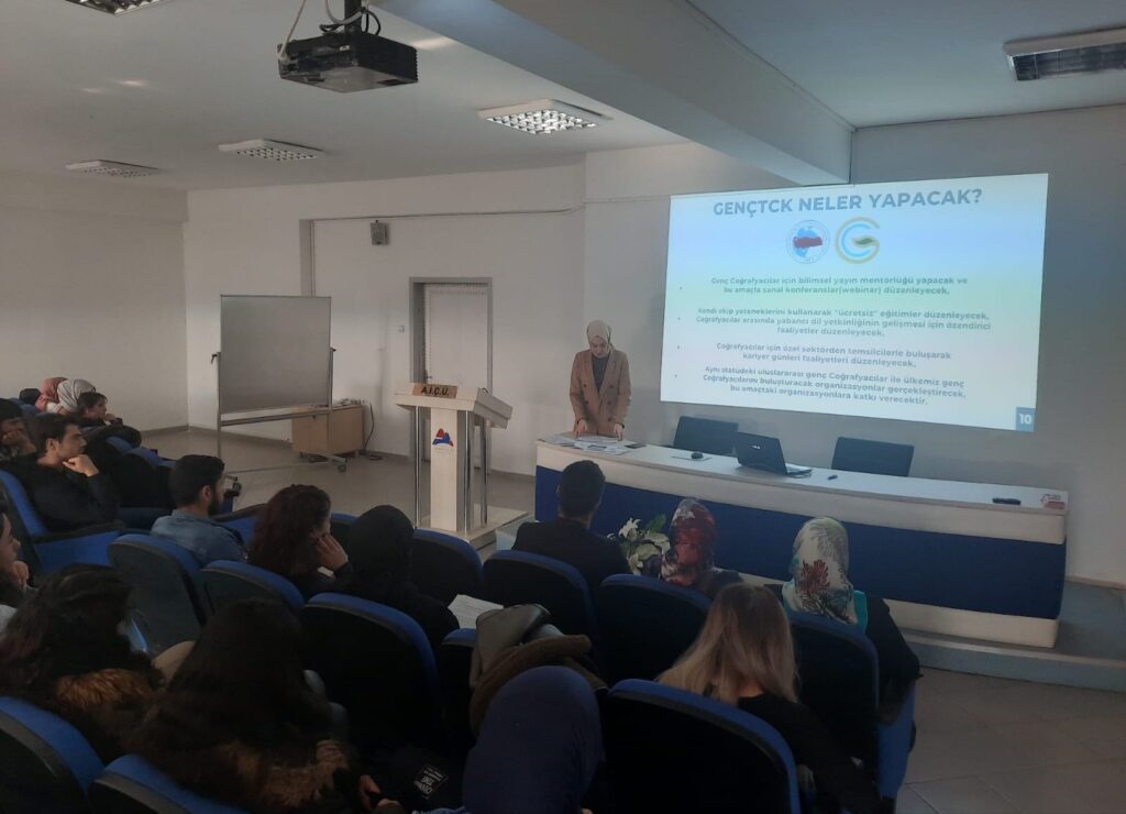 Temsilcimiz Ebru Aydoğan kurumumuzun tarihi ve önemi ile alakalı bir sunum gerçekleştirmiştir. Ağrı İbrahim Çeçen Üniversitesi Coğrafya Bölümü Başkanı Doç. Dr. Emine Tayfur, Öğretim Üyeleri Dr. Tolga Korkusuz, Dr. Sevda Karaca ve Araştırma Görevlisi Muhammet Ay hocalarımız da programa katılmışlardır. Başta kıymetli hocalarımız olmak üzere GençTCK Üniversite Temsilcimiz Ebru Aydoğan’a ve tüm katılımcılarımıza ilgi ve…
